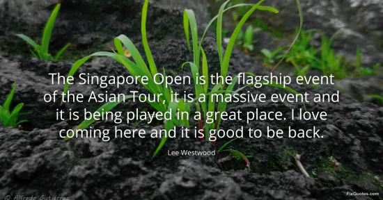 Westwood, Lee. (2026, January 15). The Singapore Open is the flagship event of the Asian Tour, it is a massive event and it is being played in a great place. I love coming here and it is good to be back. FixQuotes. https://fixquotes.com/quotes/the-singapore-open-is-the-flagship-event-of-the-167972/