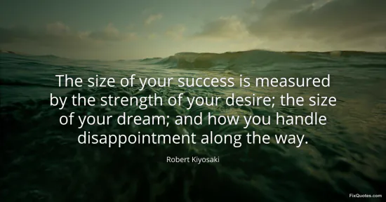 Kiyosaki, Robert. "The size of your success is measured by the strength of your desire; the size of your dream; and how you handle disappointment along the way." FixQuotes. January 16, 2026. https://fixquotes.com/quotes/the-size-of-your-success-is-measured-by-the-133094/.
