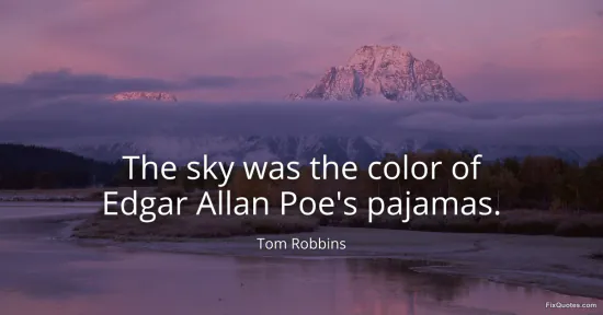 Robbins, Tom. "The sky was the color of Edgar Allan Poe's pajamas." FixQuotes. January 15, 2026. https://fixquotes.com/quotes/the-sky-was-the-color-of-edgar-allan-poes-pajamas-65528/.