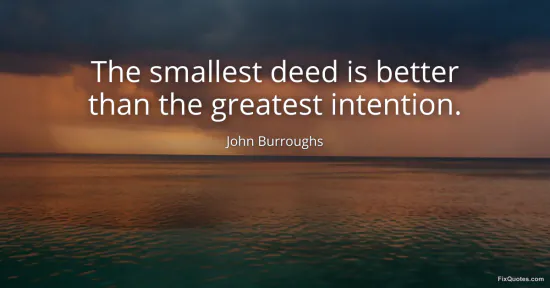 Burroughs, John. "The smallest deed is better than the greatest intention." FixQuotes. January 15, 2026. https://fixquotes.com/quotes/the-smallest-deed-is-better-than-the-greatest-55766/.