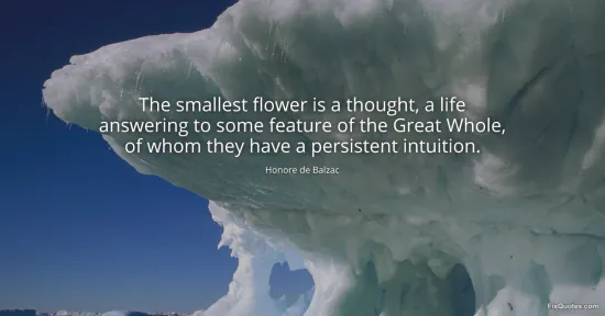 Balzac, Honore de. "The smallest flower is a thought, a life answering to some feature of the Great Whole, of whom they have a persistent intuition." FixQuotes. January 15, 2026. https://fixquotes.com/quotes/the-smallest-flower-is-a-thought-a-life-answering-24237/.