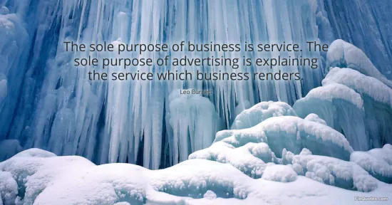 Burnett, Leo. "The sole purpose of business is service. The sole purpose of advertising is explaining the service which business renders." FixQuotes. January 17, 2026. https://fixquotes.com/quotes/the-sole-purpose-of-business-is-service-the-sole-63432/.