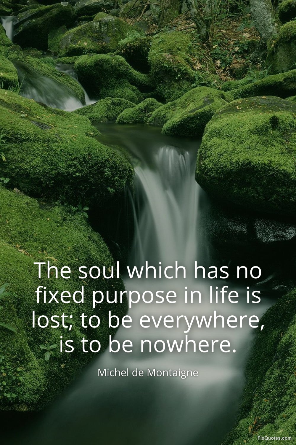 Montaigne, Michel de. (2026, February 16). The soul which has no fixed purpose in life is lost; to be everywhere, is to be nowhere. FixQuotes. https://fixquotes.com/quotes/the-soul-which-has-no-fixed-purpose-in-life-is-17417/