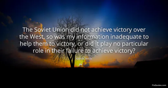 The word “victory” does heavy laundering here. It collapses a messy historical unraveling into a single sports-score outcome, as if the collapse of the Soviet system were primarily an intelligence failure rather than an economic, political, and ideological one. That compression lets Ames re-center himself in a story that wasn’t about him. He was a mid-level actor with catastrophic local impact, and the quote is an attempt to upscale that impact into grand strategy so he can argue it away.