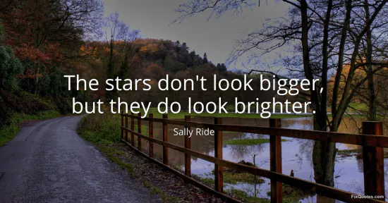 Ride, Sally. "The stars don't look bigger, but they do look brighter." FixQuotes. January 17, 2026. https://fixquotes.com/quotes/the-stars-dont-look-bigger-but-they-do-look-36053/.