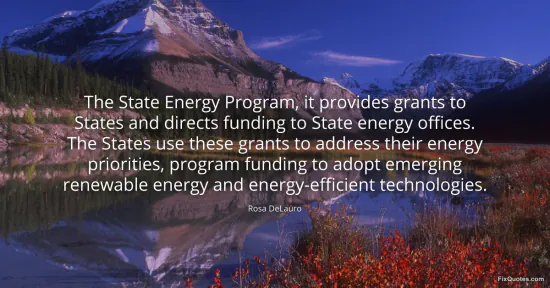 DeLauro, Rosa. "The State Energy Program, it provides grants to States and directs funding to State energy offices. The States use these grants to address their energy priorities, program funding to adopt emerging renewable energy and energy-efficient technologies." FixQuotes. January 15, 2026. https://fixquotes.com/quotes/the-state-energy-program-it-provides-grants-to-151284/.
