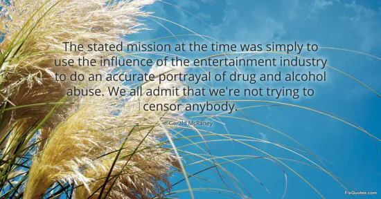McRaney, Gerald. (2026, January 17). The stated mission at the time was simply to use the influence of the entertainment industry to do an accurate portrayal of drug and alcohol abuse. We all admit that we're not trying to censor anybody. FixQuotes. https://fixquotes.com/quotes/the-stated-mission-at-the-time-was-simply-to-use-68617/