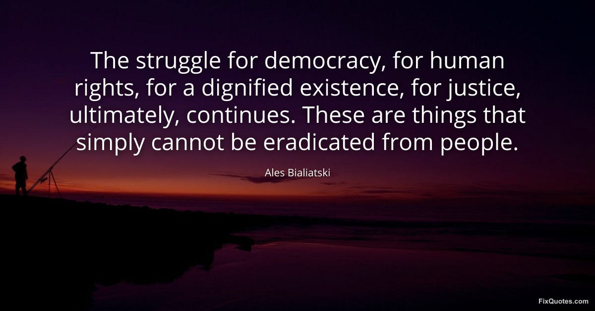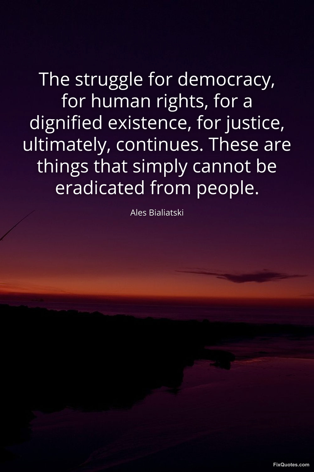 Bialiatski, Ales. (2026, March 7). The struggle for democracy, for human rights, for a dignified existence, for justice, ultimately, continues. These are things that simply cannot be eradicated from people. FixQuotes. https://fixquotes.com/quotes/the-struggle-for-democracy-for-human-rights-for-a-185708/
