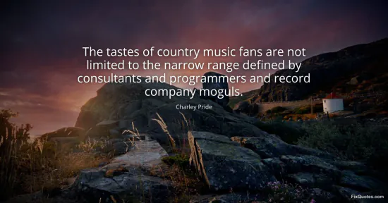 Pride, Charley. "The tastes of country music fans are not limited to the narrow range defined by consultants and programmers and record company moguls." FixQuotes. January 17, 2026. https://fixquotes.com/quotes/the-tastes-of-country-music-fans-are-not-limited-46650/.