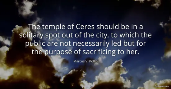 Pollio, Marcus V. "The temple of Ceres should be in a solitary spot out of the city, to which the public are not necessarily led but for the purpose of sacrificing to her." FixQuotes. January 15, 2026. https://fixquotes.com/quotes/the-temple-of-ceres-should-be-in-a-solitary-spot-161350/.