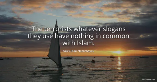 Nazarbayev, Nursultan. "The terrorists whatever slogans they use have nothing in common with Islam." FixQuotes. January 17, 2026. https://fixquotes.com/quotes/the-terrorists-whatever-slogans-they-use-have-64841/.
