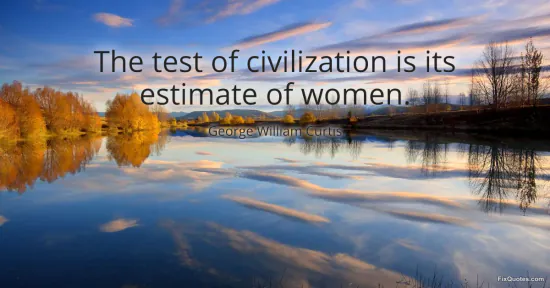 Curtis, George William. "The test of civilization is its estimate of women." FixQuotes. January 16, 2026. https://fixquotes.com/quotes/the-test-of-civilization-is-its-estimate-of-women-90173/.