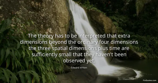 "The theory has to be interpreted that extra dimensions beyond the ordinary four dimensions the three spatial dimensions plus time are sufficiently small that they haven't been observed yet." FixQuotes, 15 Jan. 2026, https://fixquotes.com/quotes/the-theory-has-to-be-interpreted-that-extra-144881/. Accessed 13 Feb. 2026.