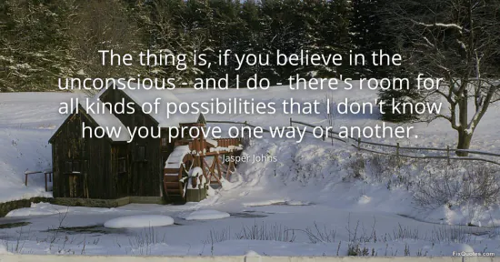 Johns, Jasper. "The thing is, if you believe in the unconscious - and I do - there's room for all kinds of possibilities that I don't know how you prove one way or another." FixQuotes. January 17, 2026. https://fixquotes.com/quotes/the-thing-is-if-you-believe-in-the-unconscious-56055/.