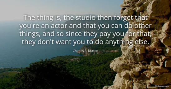 Dutton, Charles S. "The thing is, the studio then forget that you're an actor and that you can do other things, and so since they pay you for that, they don't want you to do anything else." FixQuotes. Accessed February 2, 2026. https://fixquotes.com/quotes/the-thing-is-the-studio-then-forget-that-youre-an-87432/.
