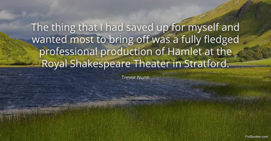 Nunn, Trevor. "The thing that I had saved up for myself and wanted most to bring off was a fully fledged professional production of Hamlet at the Royal Shakespeare Theater in Stratford." FixQuotes. January 18, 2026. https://fixquotes.com/quotes/the-thing-that-i-had-saved-up-for-myself-and-16109/.