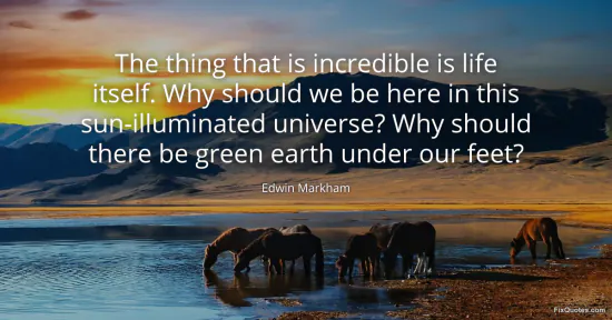 Markham, Edwin. "The thing that is incredible is life itself. Why should we be here in this sun-illuminated universe? Why should there be green earth under our feet?" FixQuotes. January 17, 2026. https://fixquotes.com/quotes/the-thing-that-is-incredible-is-life-itself-why-76907/.