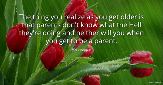 Hoppus, Mark. "The thing you realize as you get older is that parents don't know what the Hell they're doing and neither will you when you get to be a parent." FixQuotes. January 15, 2026. https://fixquotes.com/quotes/the-thing-you-realize-as-you-get-older-is-that-135402/.