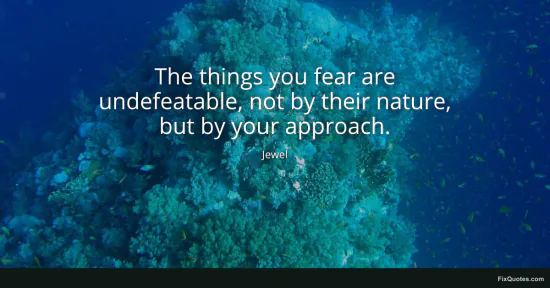 Jewel. "The things you fear are undefeatable, not by their nature, but by your approach." FixQuotes. January 16, 2026. https://fixquotes.com/quotes/the-things-you-fear-are-undefeatable-not-by-their-92371/.