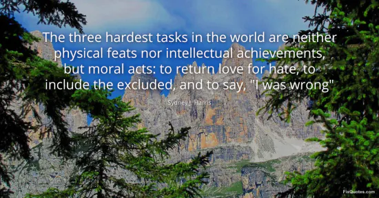Harris, Sydney J. (2026, January 15). The three hardest tasks in the world are neither physical feats nor intellectual achievements, but moral acts: to return love for hate, to include the excluded, and to say, "I was wrong". FixQuotes. https://fixquotes.com/quotes/the-three-hardest-tasks-in-the-world-are-neither-157410/