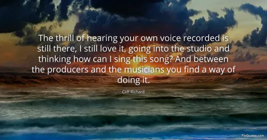 Richard, Cliff. (2026, February 19). The thrill of hearing your own voice recorded is still there, I still love it, going into the studio and thinking how can I sing this song? And between the producers and the musicians you find a way of doing it. FixQuotes. https://fixquotes.com/quotes/the-thrill-of-hearing-your-own-voice-recorded-is-47527/