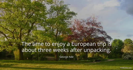 Ade, George. (2026, January 15). The time to enjoy a European trip is about three weeks after unpacking. FixQuotes. https://fixquotes.com/quotes/the-time-to-enjoy-a-european-trip-is-about-three-12567/