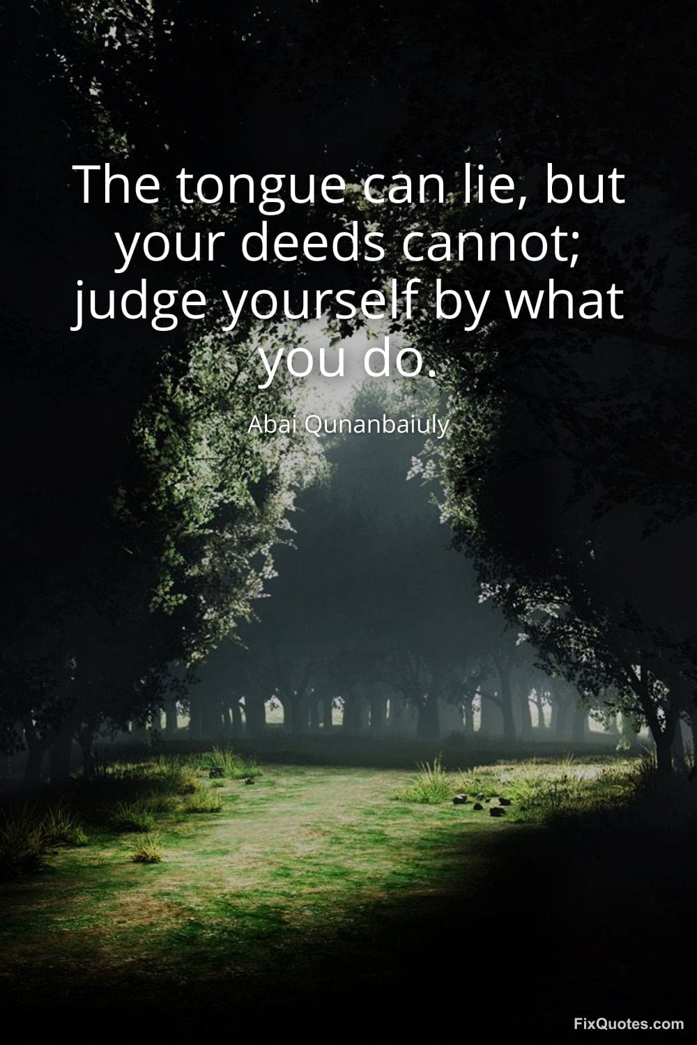 Qunanbaiuly, Abai. (2026, February 14). The tongue can lie, but your deeds cannot; judge yourself by what you do. FixQuotes. https://fixquotes.com/quotes/the-tongue-can-lie-but-your-deeds-cannot-judge-185313/