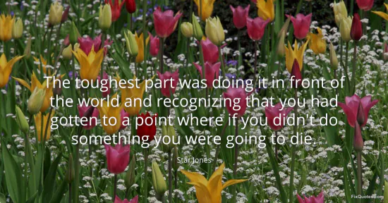 Jones, Star. "The toughest part was doing it in front of the world and recognizing that you had gotten to a point where if you didn't do something you were going to die." FixQuotes. January 16, 2026. https://fixquotes.com/quotes/the-toughest-part-was-doing-it-in-front-of-the-129221/.
