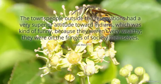 Welch, James. (2026, January 15). The townspeople outside the reservations had a very superior attitude toward Indians, which was kind of funny, because they weren't very wealthy; they were on the fringes of society themselves. FixQuotes. https://fixquotes.com/quotes/the-townspeople-outside-the-reservations-had-a-161377/