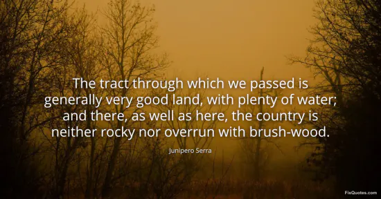 Serra, Junipero. "The tract through which we passed is generally very good land, with plenty of water; and there, as well as here, the country is neither rocky nor overrun with brush-wood." FixQuotes. January 17, 2026. https://fixquotes.com/quotes/the-tract-through-which-we-passed-is-generally-81054/.