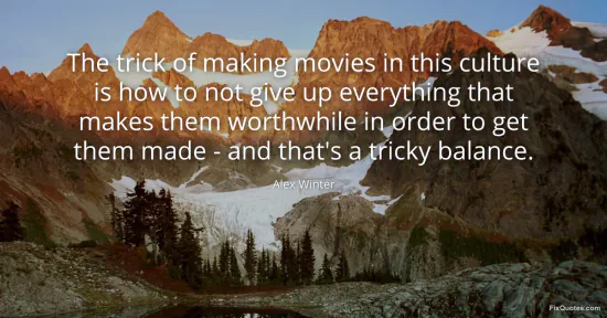 Winter, Alex. (2026, January 17). The trick of making movies in this culture is how to not give up everything that makes them worthwhile in order to get them made - and that's a tricky balance. FixQuotes. https://fixquotes.com/quotes/the-trick-of-making-movies-in-this-culture-is-how-41036/