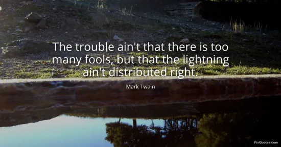 Twain, Mark. "The trouble ain't that there is too many fools, but that the lightning ain't distributed right." FixQuotes. January 18, 2026. https://fixquotes.com/quotes/the-trouble-aint-that-there-is-too-many-fools-but-22257/.