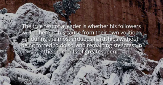 Xenophon. (n.d.). The true test of a leader is whether his followers will adhere to his cause from their own volition, enduring the most arduous hardships without being forced to do so, and remaining steadfast in the moments of greatest peril. FixQuotes. https://fixquotes.com/quotes/the-true-test-of-a-leader-is-whether-his-96084/