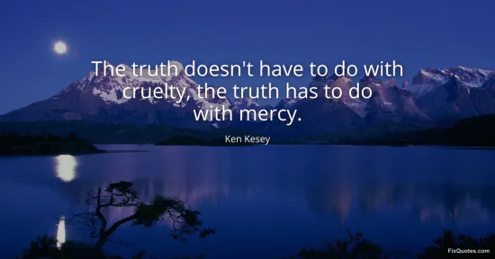 Kesey, Ken. "The truth doesn't have to do with cruelty, the truth has to do with mercy." FixQuotes. February 8, 2026. https://fixquotes.com/quotes/the-truth-doesnt-have-to-do-with-cruelty-the-152546/.