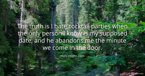 Clark, Mary Higgins. "The truth is I hate cocktail parties when the only person I know is my supposed date, and he abandons me the minute we come in the door." FixQuotes. January 16, 2026. https://fixquotes.com/quotes/the-truth-is-i-hate-cocktail-parties-when-the-93313/.