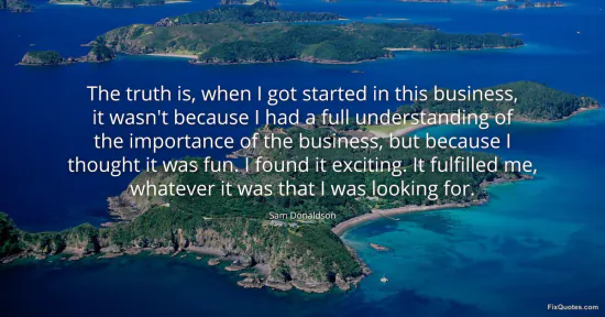 Donaldson, Sam. (2026, January 16). The truth is, when I got started in this business, it wasn't because I had a full understanding of the importance of the business, but because I thought it was fun. I found it exciting. It fulfilled me, whatever it was that I was looking for. FixQuotes. https://fixquotes.com/quotes/the-truth-is-when-i-got-started-in-this-business-95167/