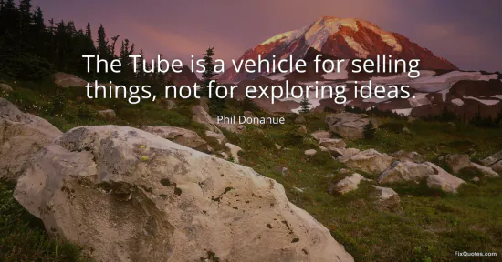 Donahue, Phil. (2026, January 16). The Tube is a vehicle for selling things, not for exploring ideas. FixQuotes. https://fixquotes.com/quotes/the-tube-is-a-vehicle-for-selling-things-not-for-108942/