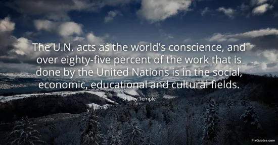 Calling the U.N. "the world's conscience" is a boldly sentimental metaphor from someone who understood, better than most, how public narratives get built. Shirley Temple frames the institution less as a clunky arena of competing national interests and more as a moral character in a global story: the patient adult in the room, reminding countries what they claim to believe. It works because it borrows the emotional shorthand of her own cultural legacy - innocence, decency, uplift - and welds it to international bureaucracy, making the U.N. feel less remote and more human.