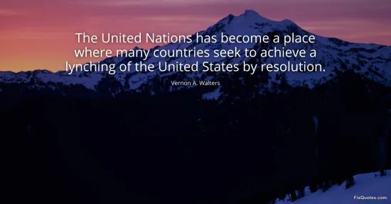 Walters, Vernon A. (2026, January 15). The United Nations has become a place where many countries seek to achieve a lynching of the United States by resolution. FixQuotes. https://fixquotes.com/quotes/the-united-nations-has-become-a-place-where-many-156938/