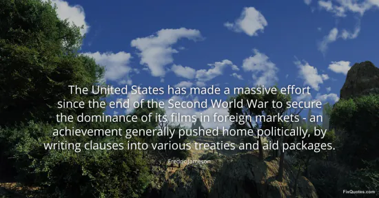 Jameson, Fredric. "The United States has made a massive effort since the end of the Second World War to secure the dominance of its films in foreign markets - an achievement generally pushed home politically, by writing clauses into various treaties and aid packages." FixQuotes. January 16, 2026. https://fixquotes.com/quotes/the-united-states-has-made-a-massive-effort-since-104782/.