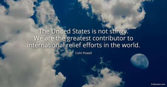 Powell, Colin. (2026, January 15). The United States is not stingy. We are the greatest contributor to international relief efforts in the world. FixQuotes. https://fixquotes.com/quotes/the-united-states-is-not-stingy-we-are-the-23310/