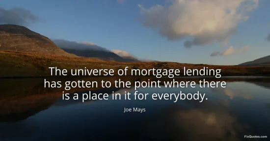 Mays, Joe. (2026, January 16). The universe of mortgage lending has gotten to the point where there is a place in it for everybody. FixQuotes. https://fixquotes.com/quotes/the-universe-of-mortgage-lending-has-gotten-to-118536/