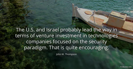 Thompson, John W. (2026, January 17). The U.S. and Israel probably lead the way in terms of venture investment in technologies companies focused on the security paradigm. That is quite encouraging. FixQuotes. https://fixquotes.com/quotes/the-us-and-israel-probably-lead-the-way-in-terms-80594/