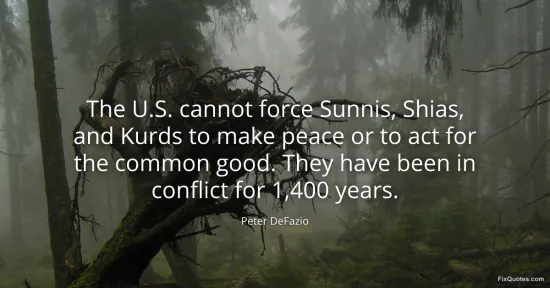 DeFazio, Peter. (2026, January 17). The U.S. cannot force Sunnis, Shias, and Kurds to make peace or to act for the common good. They have been in conflict for 1,400 years. FixQuotes. https://fixquotes.com/quotes/the-us-cannot-force-sunnis-shias-and-kurds-to-68875/