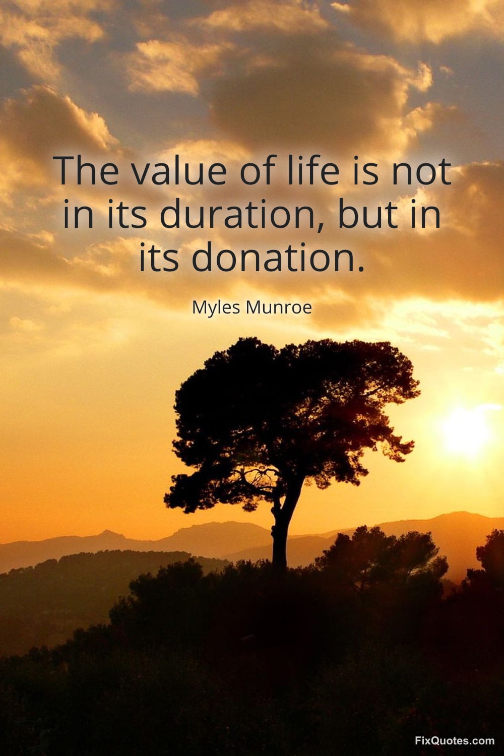 Munroe, Myles. (2026, February 16). The value of life is not in its duration, but in its donation. FixQuotes. https://fixquotes.com/quotes/the-value-of-life-is-not-in-its-duration-but-in-185573/