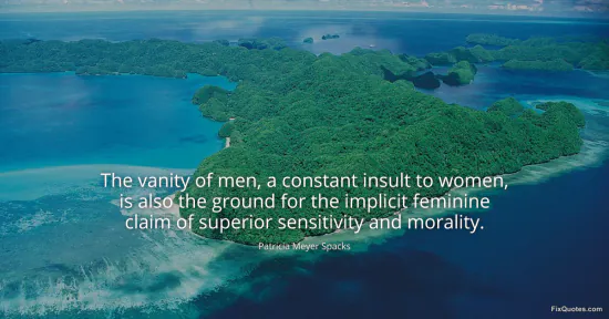 Spacks, Patricia Meyer. "The vanity of men, a constant insult to women, is also the ground for the implicit feminine claim of superior sensitivity and morality." FixQuotes. January 16, 2026. https://fixquotes.com/quotes/the-vanity-of-men-a-constant-insult-to-women-is-115635/.