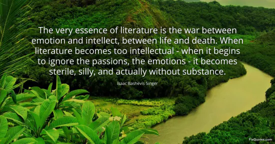 Singer, Isaac Bashevis. (2026, January 17). The very essence of literature is the war between emotion and intellect, between life and death. When literature becomes too intellectual - when it begins to ignore the passions, the emotions - it becomes sterile, silly, and actually without substance. FixQuotes. https://fixquotes.com/quotes/the-very-essence-of-literature-is-the-war-between-73156/
