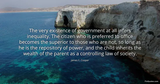 Cooper, James F. "The very existence of government at all infers inequality. The citizen who is preferred to office becomes the superior to those who are not, so long as he is the repository of power, and the child inherits the wealth of the parent as a controlling law of society." FixQuotes. February 16, 2026. https://fixquotes.com/quotes/the-very-existence-of-government-at-all-infers-121765/.