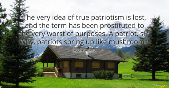 Walpole, Robert. (2026, January 18). The very idea of true patriotism is lost, and the term has been prostituted to the very worst of purposes. A patriot, sir! Why, patriots spring up like mushrooms! FixQuotes. https://fixquotes.com/quotes/the-very-idea-of-true-patriotism-is-lost-and-the-12099/