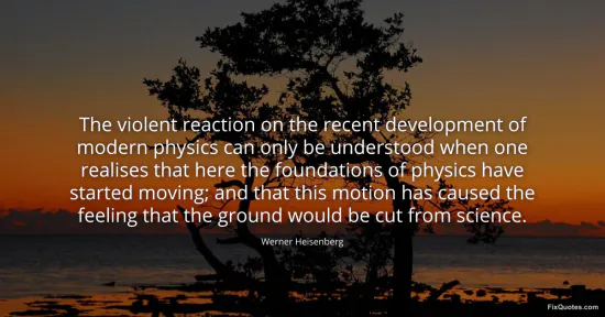 Heisenberg, Werner. "The violent reaction on the recent development of modern physics can only be understood when one realises that here the foundations of physics have started moving; and that this motion has caused the feeling that the ground would be cut from science." FixQuotes. January 16, 2026. https://fixquotes.com/quotes/the-violent-reaction-on-the-recent-development-of-116513/.